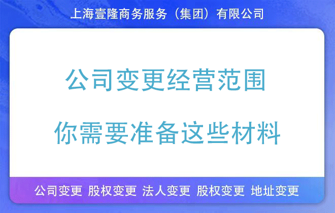 綜上所述,公司變更經(jīng)營范圍需要準備的材料包括基本申請材料、特定情況下的附加材料以及遵循相應的辦理流程。在準備材料時,務必確保材料的真實性和完整性,以便順利完成變更登記手續(xù)。若您對以上材料還存在疑惑,可以找上海壹隆為您解答各種疑惑,還可以交給上海壹隆代辦,無需本人到場,輕松拿證,歡迎咨詢!
